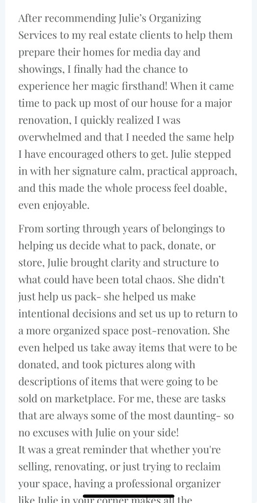 If you’re preparing for a move and need help with decluttering, packing, unpacking, or setting up new systems—whether you’re upsizing, downsizing, or know a family member or friend who could use my support—please don’t hesitate to reach out.